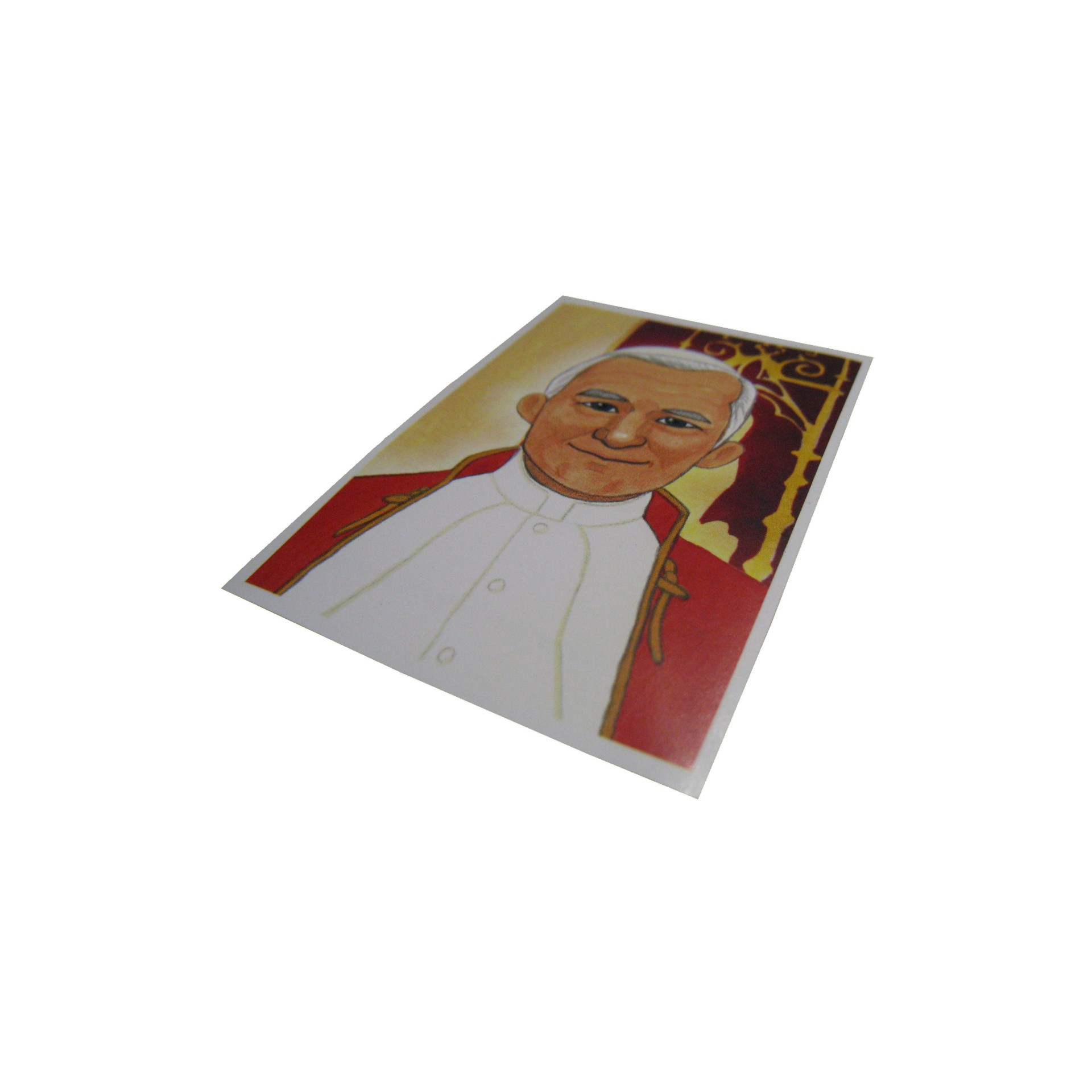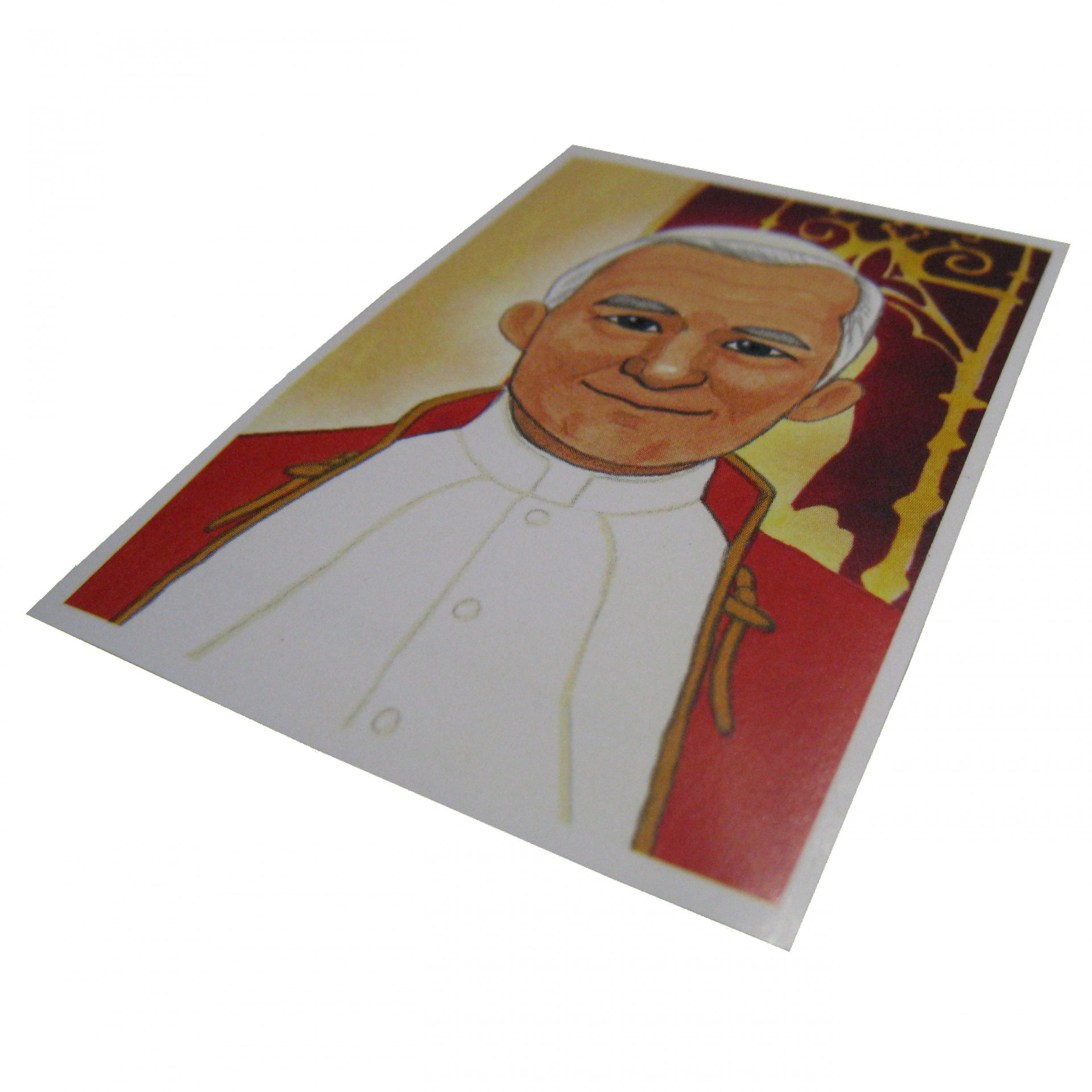 • Poster de figura papal com batina branca e capa vermelha, em fundo amarelo e castanho
