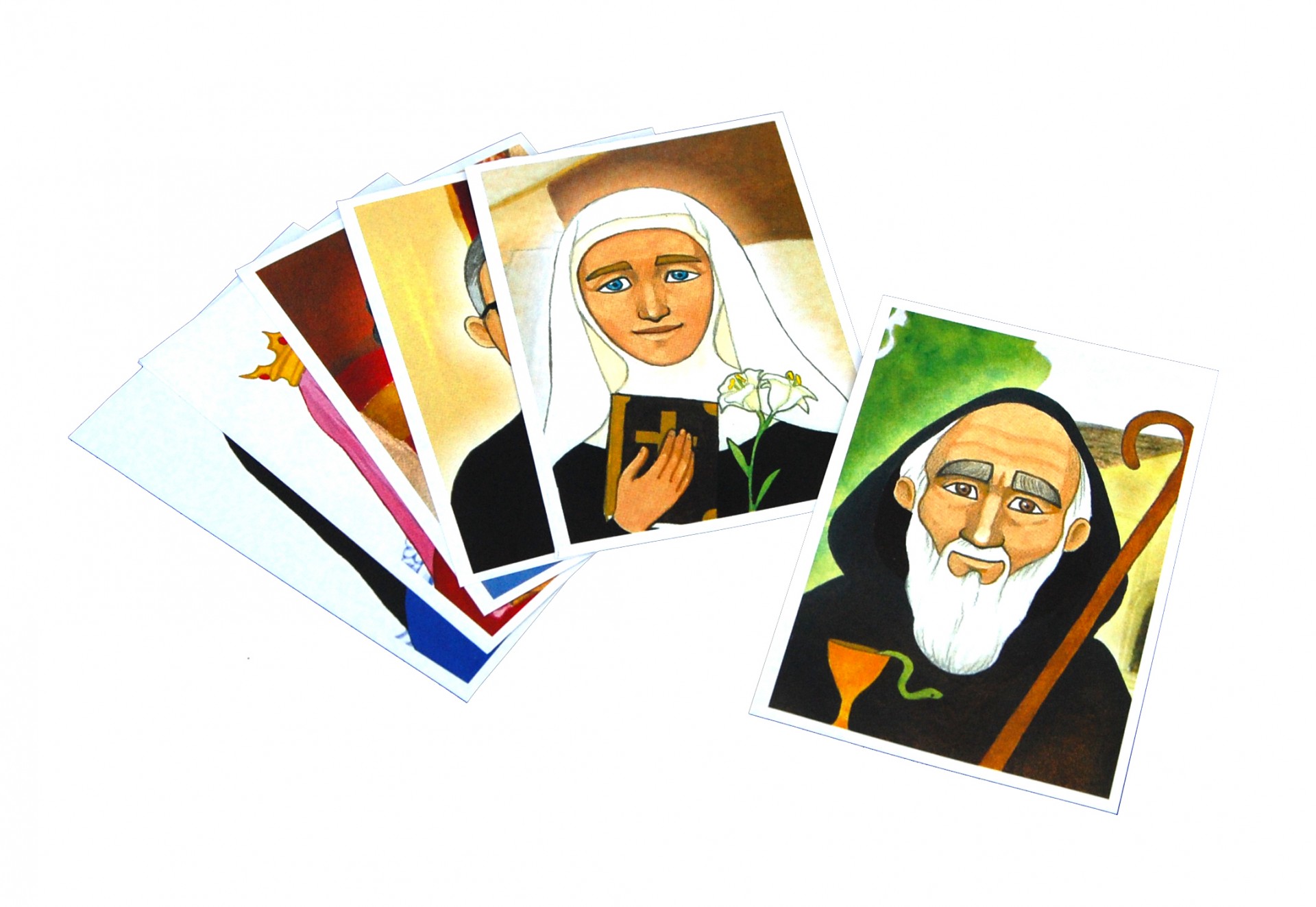 • Cartões ilustrados de figuras religiosas sobre fundo branco